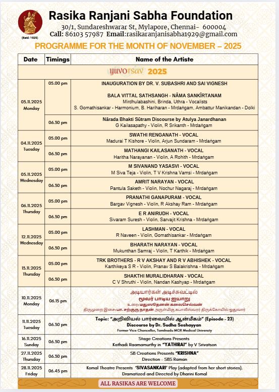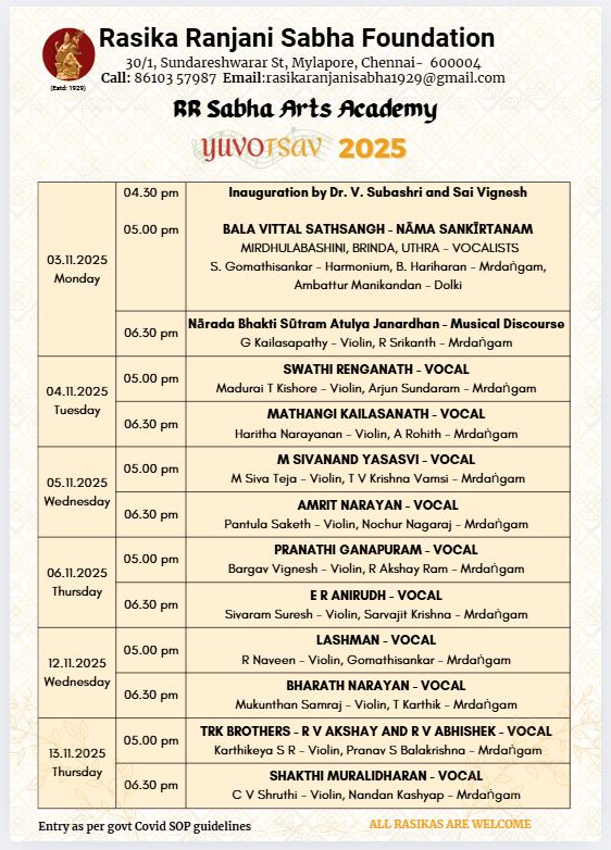 Rasika Ranjani Sabha is proud to present a special curation of YUOTSAV-2025.